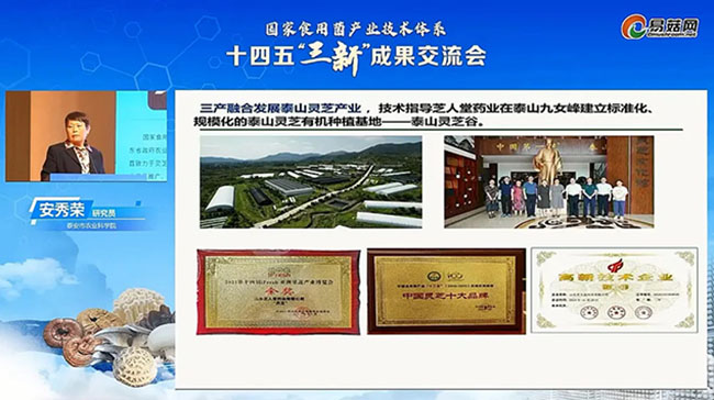 国家食用菌产业技术体系泰安综合试验站站长安秀荣在发言中详细介绍了泰山赤灵芝产业发展情况和菌种、技术、产品“三新”成果,并高度赞赏芝人堂在泰山灵芝产业中所作出的突出贡献。